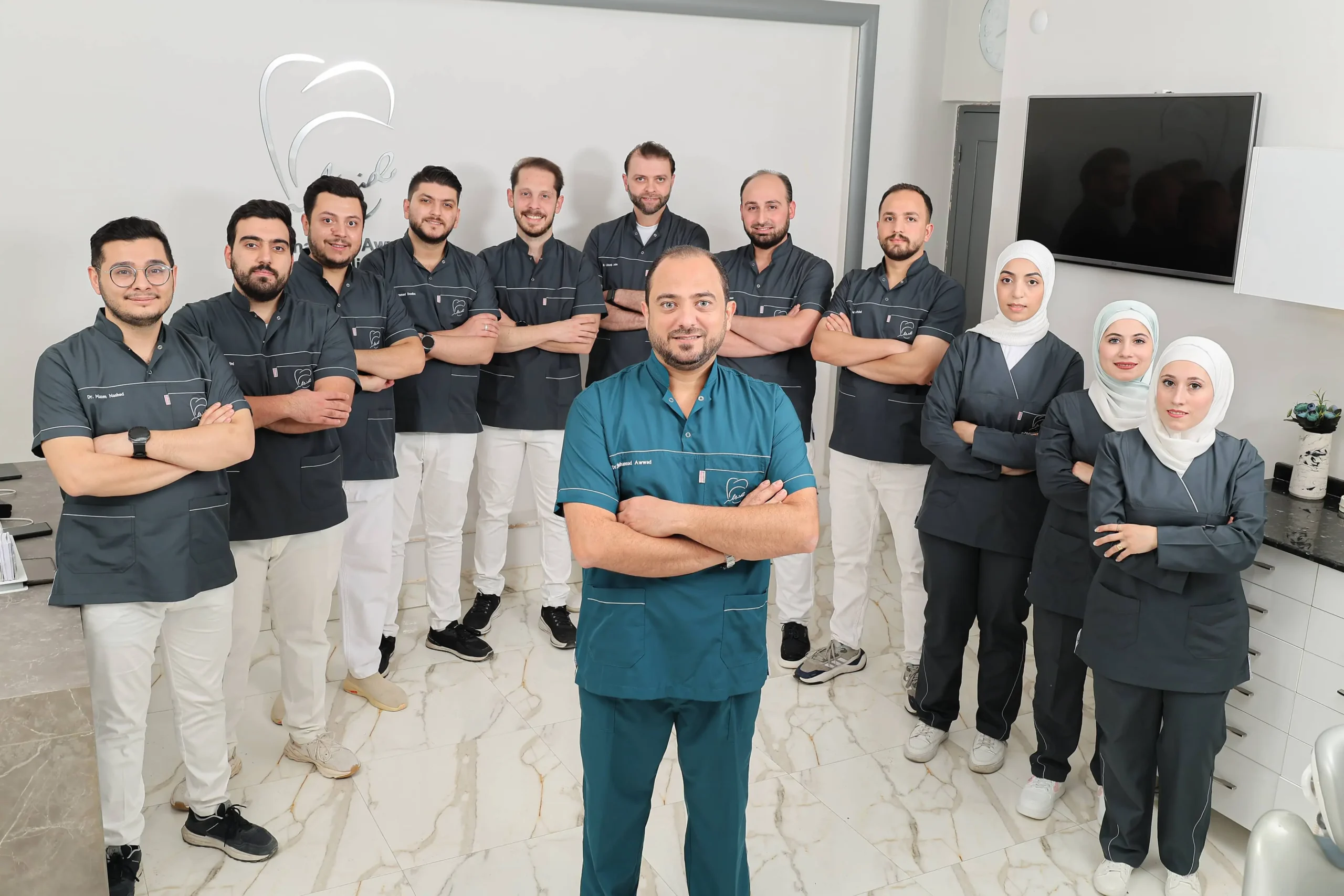 يعمل في المركز 10 أطباء وأخصائيون بتنسيق كامل لتقديم خطة علاج متكاملة تحت سقف واحد. التعاون بين التخصصات يتيح حلولاً متكاملة من الزرع والتجميل إلى التقويم وجراحة الفم.